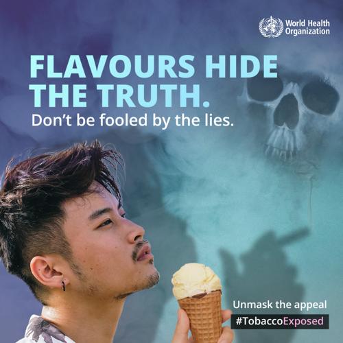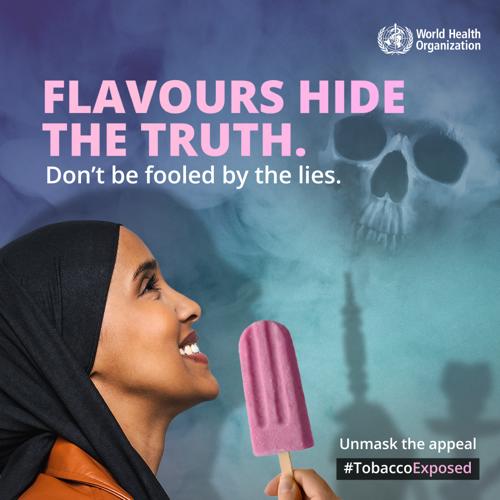 WHO vísir við hesum boðskapinum á, at vørur so sum vapes, snús og nikotinposar verða sniðgivnar til at síggja meinaleysar út og líkjast í veruleikanum góðgæti, men at tær eru heilsuskaðiligar uttan mun til innpakking. Ídnaðurin brúkar lokkandi smakk, anga og fangandi litir til at eggja fólki, serliga børnum og ungum, at brúka vørurnar. Hesi snildi gera tað lættari at byrja – og truplari at gevast.